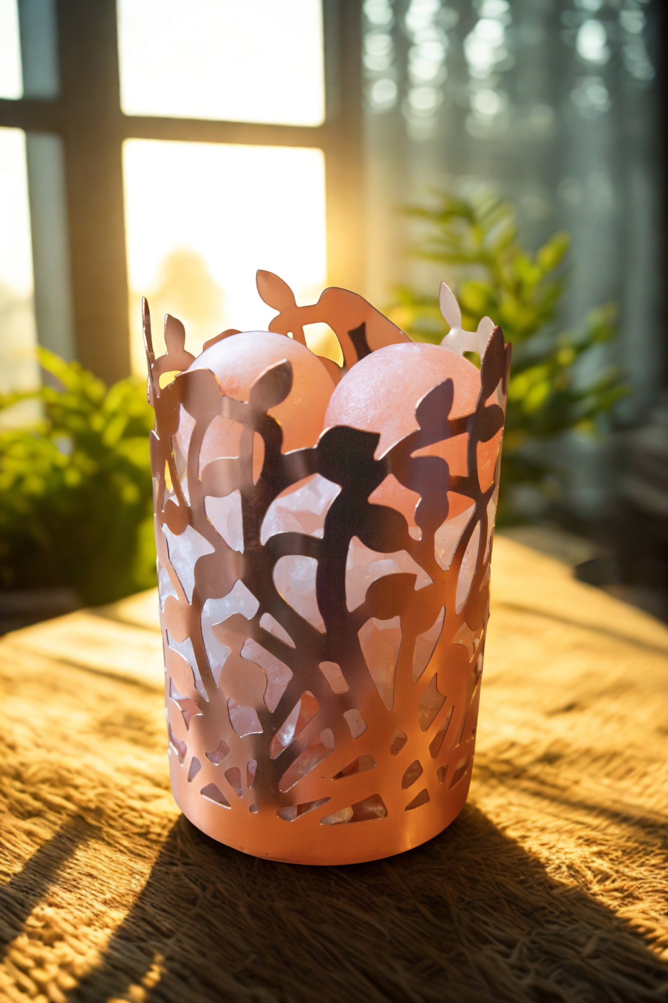 Handcrafted Golden Vine Himalayan Salt Therapy Lamp (2 Massage Balls)
